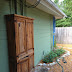 We found an armoire at a yard sale for $20. I immediately knew that with a bit of modification, it could be the solution to cover my unsightly wires. Hubby helped me cut the armoire in half lengthwise to make the cabinet more narrow, then we mounted it onto the outside wall to cover the wires. Because the cabinet was not quite tall enough to cover the top of the equipment, we raised the foundation under the cabinet with garden stepping stones. This will also help keep the bottom of the cabinet dry when it rains.